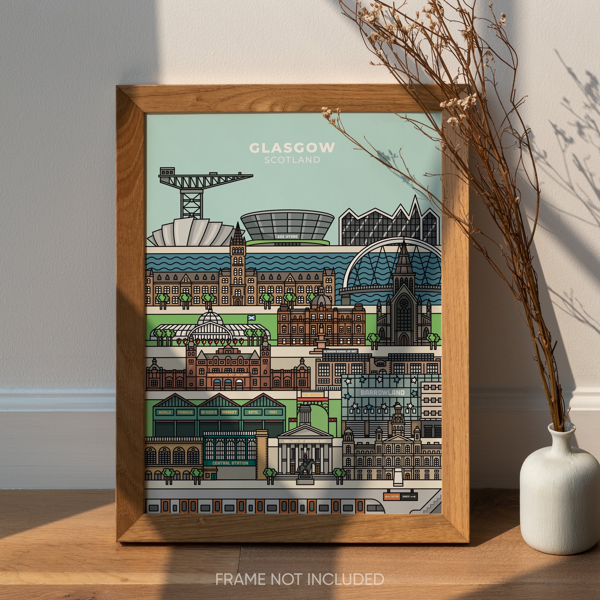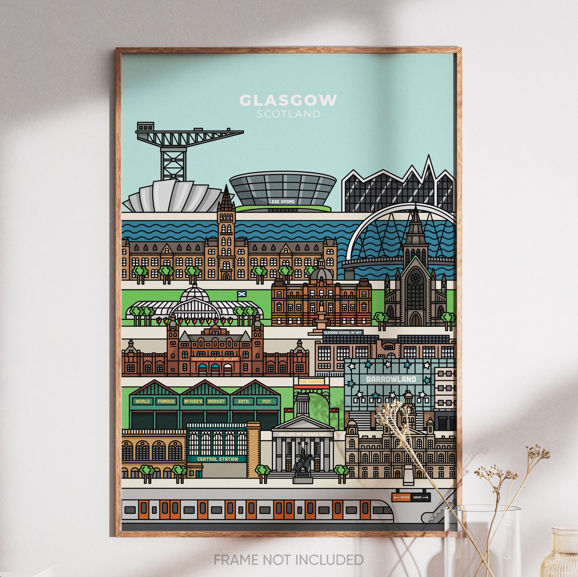 This poster is the perfect gift for anyone who loves Glasgow! The vibrant illustration contains landmarks from the Scottish city and is the perfect addition to any home or workspace!
